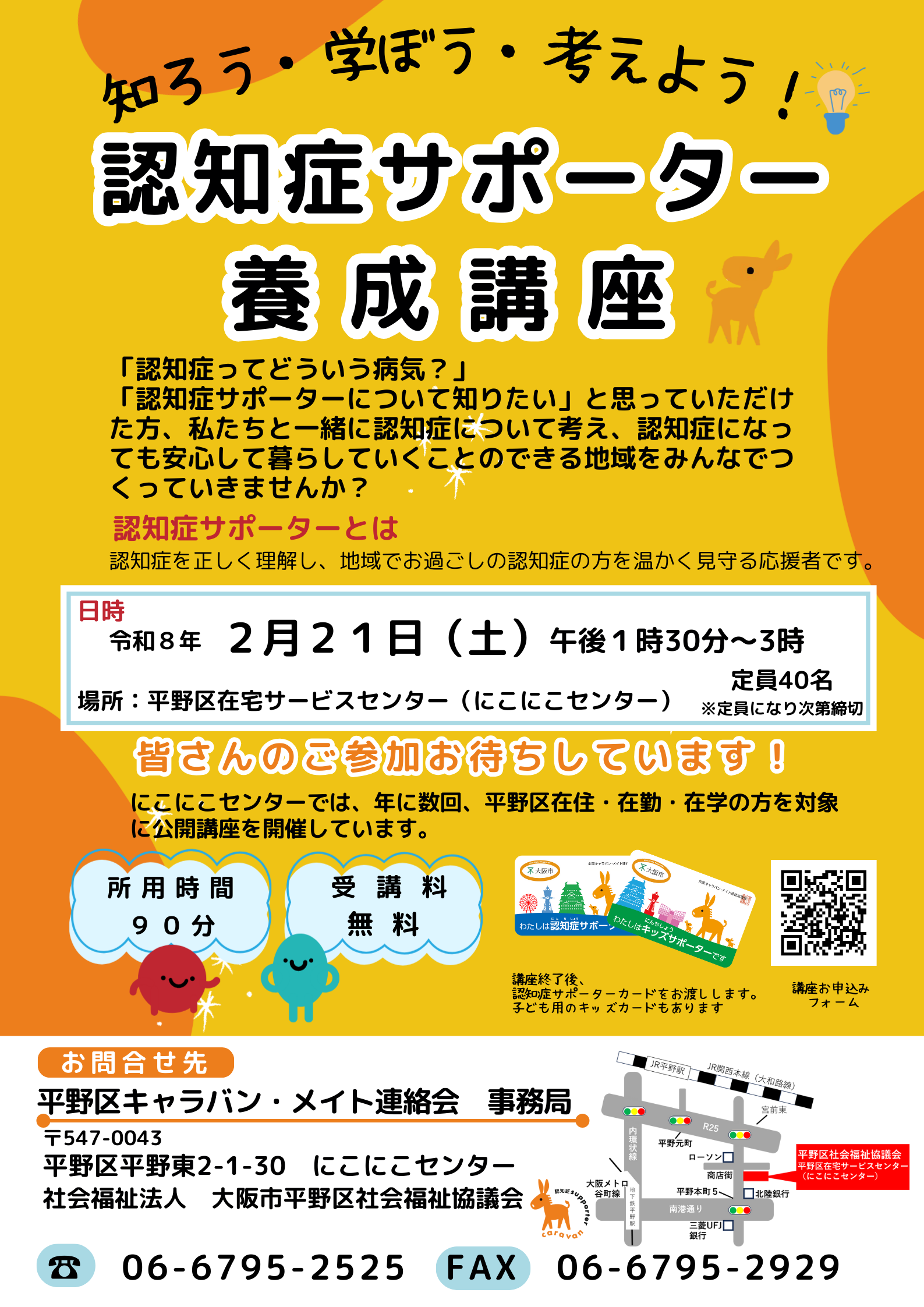 【申込方法】①電話 06-6795-2525 ②下記チラシの申込フォームのQRコード