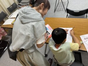 7年間居場所活動を続けてきた『スミレスマイルスペース』ですが、今年度初めに活動の内容を変更。「今までは、宿題を持って来てもいいよ、と言うだけだったのですが、今年から、本格的に宿題をする居場所にしました」と、池山さん。きっかけは、ご自身がいきいき活動の指導員をしていた経験からだそう。続けて、「勉強をしたくないと言う子でも、マンツーマンで関わることで、宿題をやりきれた姿を見て、丁寧に寄り添うことの大切さを感じました。活動内容の変更に対するこどもたちの反応にドキドキしましたが、想像以上にこどもたちは真剣に宿題に取り組む姿を見せてくれました」と、教えてくれました。