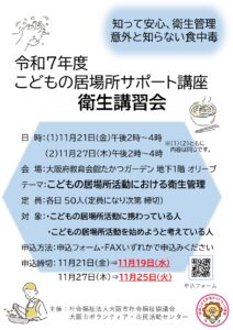 - 令和7年度こどもの居場所サポート講座 衛生講習会
