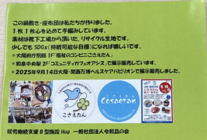 - 2025年10月8日(水)就労継続支援B型施設Hugより手づくり鍋敷きをいただきました