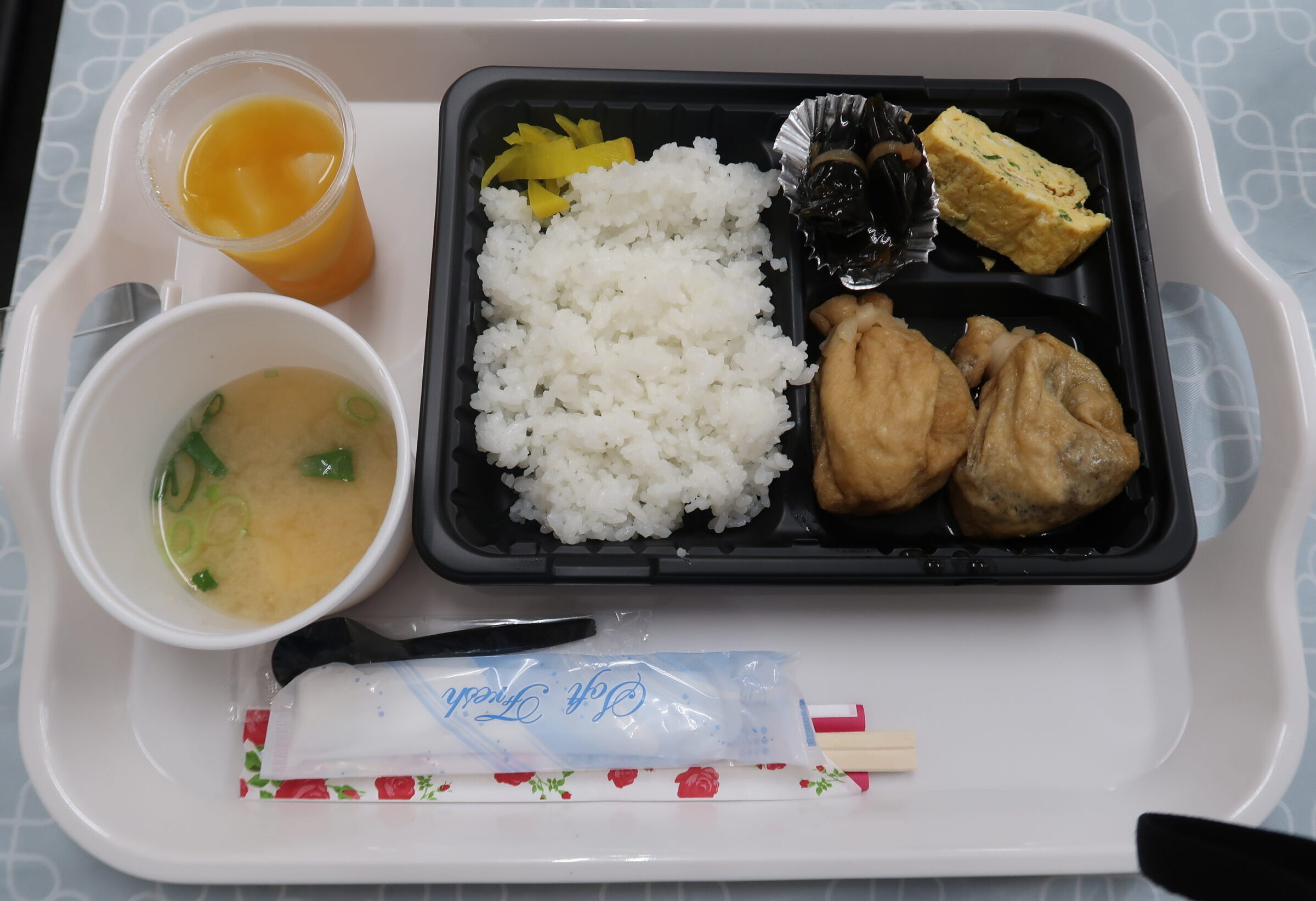 にこにこ食堂は、午前11時30分から午後2時まで活動しており、取材当日は20人近くの方が参加していました。提供されている食事は、活動者の方々の手作りで、当日は、代表の植村妙子さんのおふくろの味である信田煮しのだにをメインとしたお弁当でした。また、食後にはコーヒーやお菓子の提供もあり、参加した方々で交流できる機会となりました。