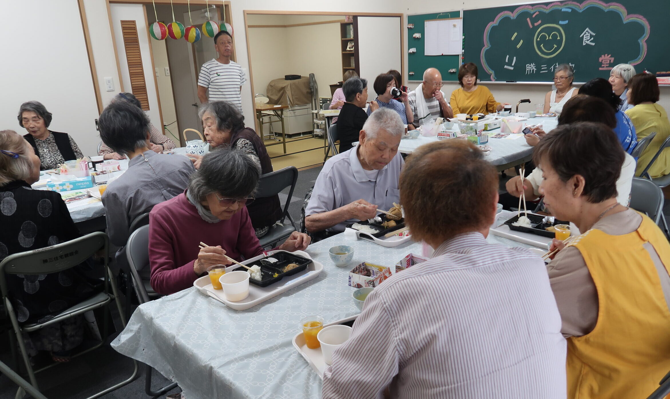 天王寺区聖和せいわ地域の大阪市営勝三第1住宅では、ボランティアグループの「勝三第1住宅ふれあい活動」が居住者を対象として、毎週金曜日(第3週のみ土曜日)に百歳体操、第2土曜日に「にこにこ食堂」、毎月第4火曜日にふれあい喫茶、毎週月曜日~土曜日にラジオ体操、毎月第3土曜日に娯楽の日などのさまざまな活動を実施しています。