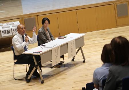 | 講演会の第1部では、計画策定のアドバイザーとしても関わりの深い、大阪成蹊短期大学准教授の鈴木大介先生から「地域福祉活動計画について-この2年間で見えてきたこと-」と題し、講演がありました。 |