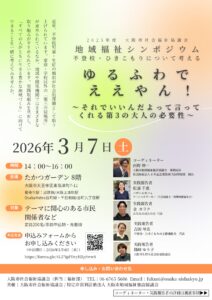 | 令和8年3月7日(土)に開催する令和7年度地域福祉シンポジウムについて、大阪市社協HP等でご案内していますが、本記事では担当の大阪市社協福祉部職員に聞いたイベントの魅力をQ&A形式で紹介します。 |